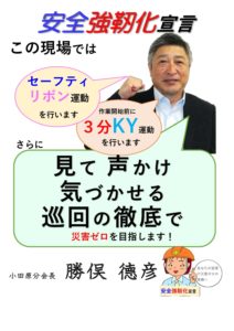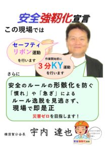 労働防止の重点となる墜落転落災害防止を加え、3 つの運動【「セーフティリボン運動」と「3分KY運動」「安全行動宣言運動」】のさらなる展開を図ることを核として、神奈川支部独自の 「かながわ安全強靭化計画実施要項」に基づく運動を展開を進めております。運動の概要を以下のとおりご案内申し上げます。